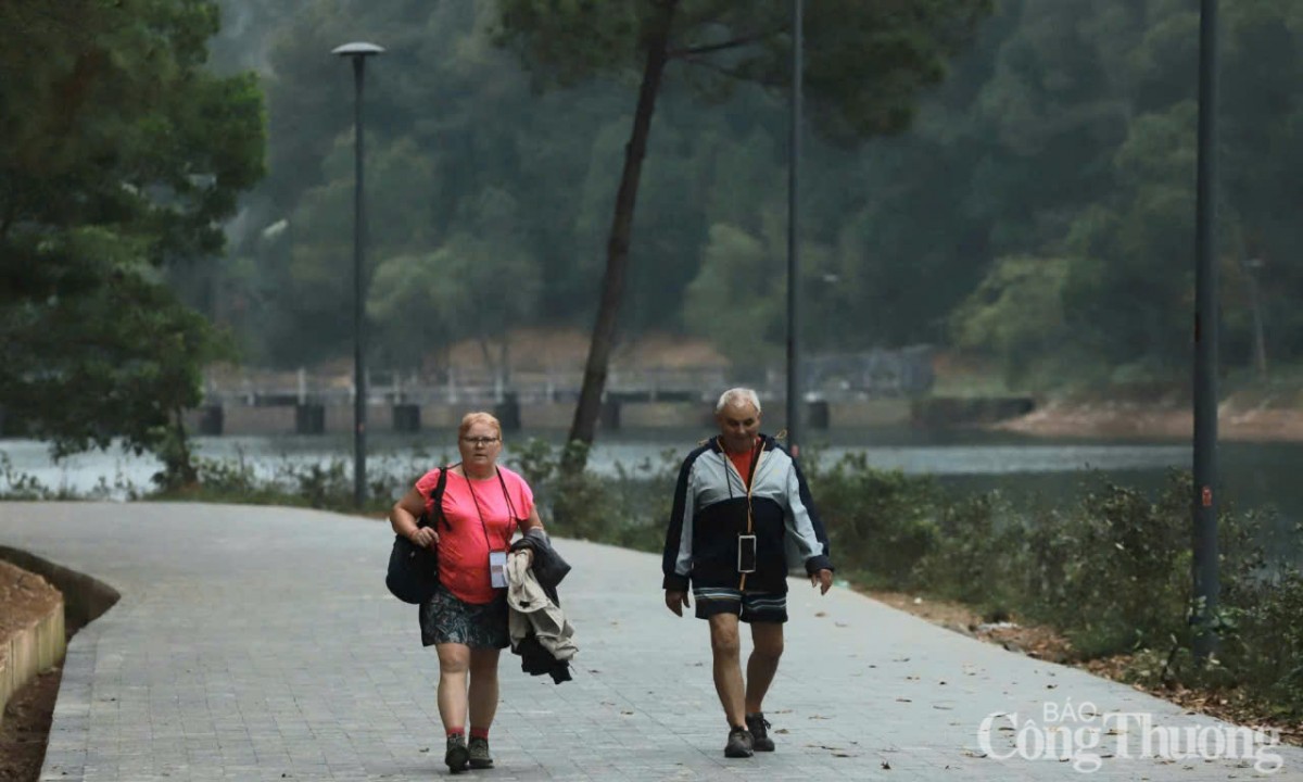 | Gia đình du khách nước ngoài tản bộ trên những cung đường xanh mát |