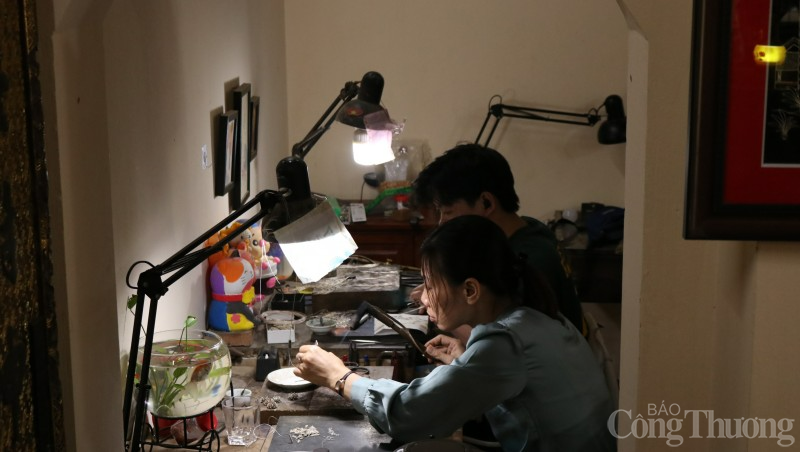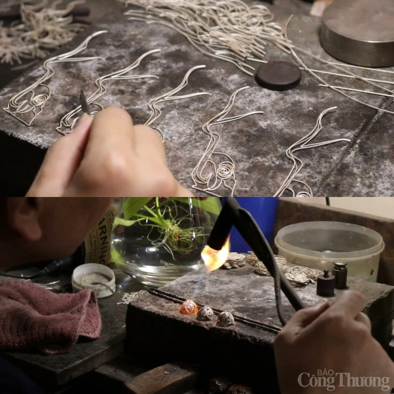 | Nghệ nhân đậu bạc cần có những kỹ năng khéo léo, tinh tế để đậu từng chi tiết nhỏ cho sản phẩm. (Ảnh Ngọc Anh) |
