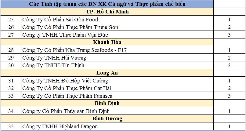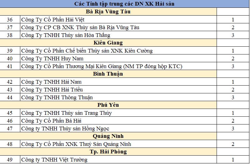 | Danh sách 49 doanh nghiệp xuất khẩu thủy sản xuất sắc năm 2024 . Ảnh: VASEP |