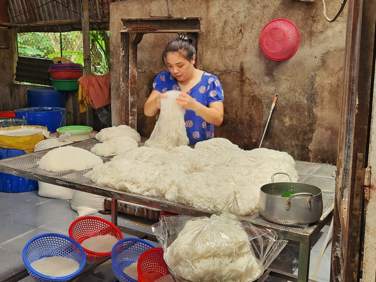 | Bún Vân Cù có màu trắng ngà, thơm ngon, là sản phẩm cung cấp, tiêu thụ mạnh tại các quán bún bò Huế. Ảnh: Nguyễn Tuấn |