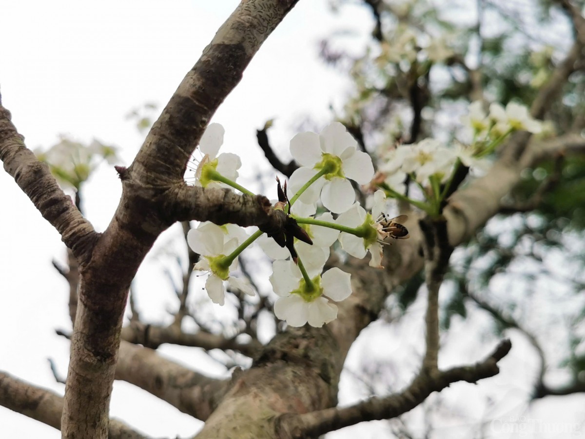 | Hoa lê có màu trắng tinh khôi, khi nở 5 cánh bật ra từ thân cành xù xì, tạo vẻ đẹp hoang dã, tinh khiết tượng trưng cho sức sống mãnh liệt của mùa Xuân. |