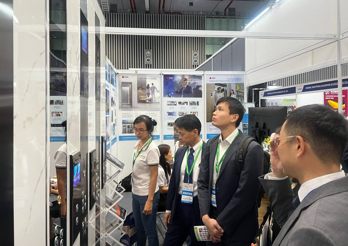 | Khách tham quan gian hàng thang máy tại triển lãm Vietnam Elevator Expo |