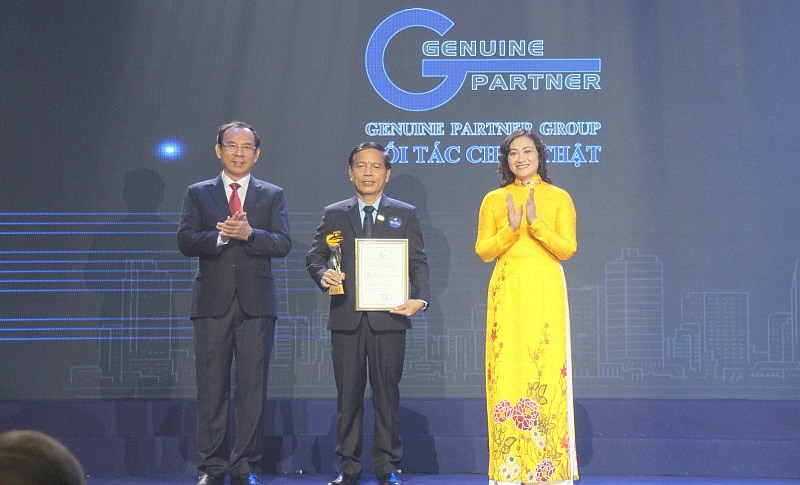 Bí thư Thành ủy TP. Hồ Chí Minh Nguyễn Văn Nên và Thứ trưởng Bộ Công Thương Phan Thị Thắng trao chứng nhận cho doanh nghiệp đạt giải Thương hiệu Vàng năm 2023 |