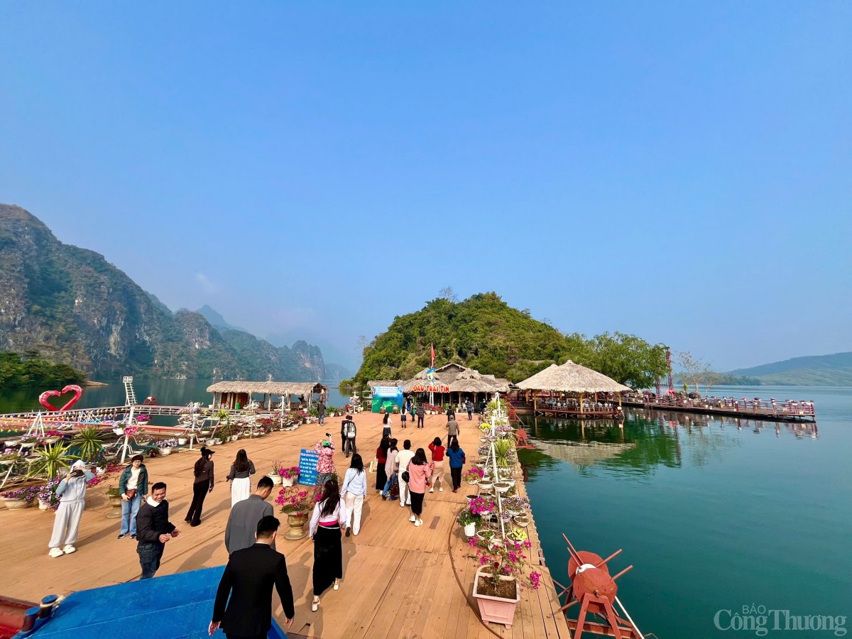 | Khách du lịch ghế thăm đảo Trái Tim trên địa bàn huyện Quỳnh Nhai, tỉnh Sơn La. Ảnh Lương Doanh |